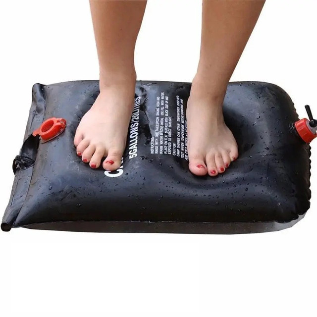 Похідний переносний душ має 20-літровий герметичний складаний резервуар із дуже міцного та легкого ПВХ матеріалу. Дачний душ зроблений спеціально з матеріалу чорного кольору, щоб краще поглинати сонячне світло та швидко нагріватися. Він без проблем слугуватиме Вам не один сезон. Легкий, компактний, міцний і надійний кемпінговий душ.